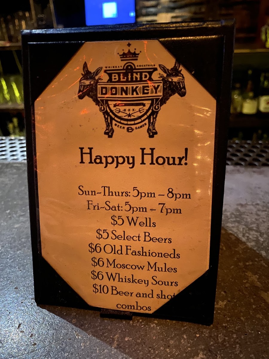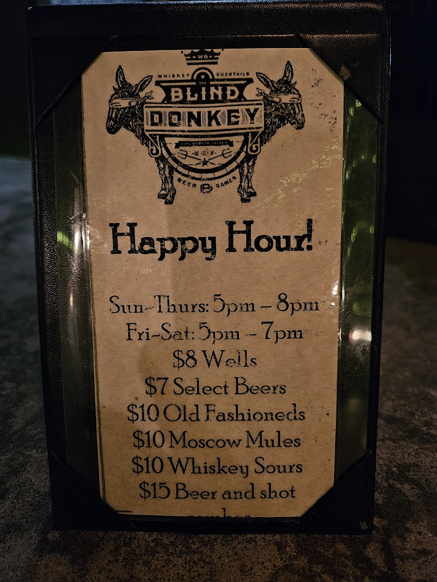 Blind Donkey Menu