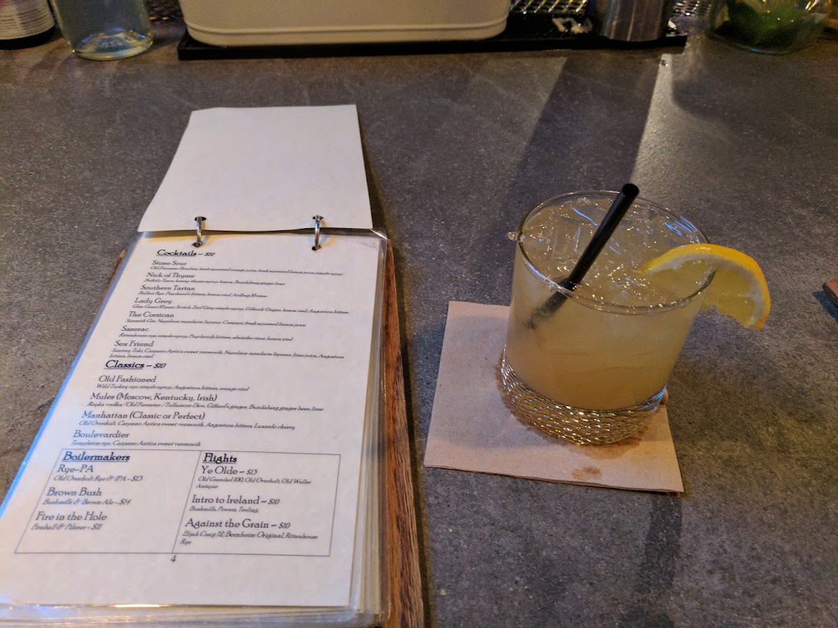 On the drinks side, the menu showcases a curated selection of cocktails and spirits with an emphasis on whiskey and beer. Guests often enjoy timeless cocktails such as the Old Fashioned or Sazerac, as well as specialty drinks like the Irish Mule, alongside a rotating lineup of beers including standout options like Trappistes Rochefort 8 and local ciders. These drinks complement the bar’s laidback, speakeasy-inspired vibe, fostering a sense of ease whether you're unwinding after work or catching up with friends.